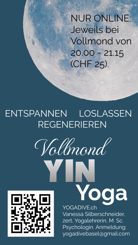 Falls Du merkst, dass Du mehr Ruhe in Deinem Leben brauchst oder dein Energielevel gerade niedrig ist, empfehle ich Dir meine Yin Yoga Stunden. Du kannst Dich ganz einfach per Whatsapp 076 569 59 92 für die Stunde am Mittwoch 13. August um 20:00 anmelden und erhältst den Zoom-Link 2h vor Beginn. Da unser Lebensstil sehr Yang-orientiert ist, kann ich Yin Yoga auch für alle anderen wärmstens empfehlen.